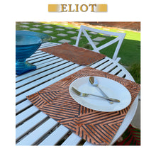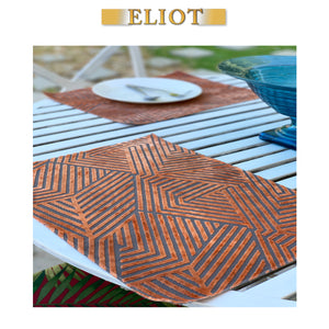 Aurora - Pack of 6 Beautiful Geometric Burnout Velvet One-Side Placemats - Color: Satsuma