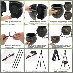 - Halloween Cauldron Decor: Inspired by the mysterious Halloween atmosphere, this witch cauldron with a holder can be paired with witches from our store. Place this eerie large cauldron in your yard to add a unique twist to your Halloween decor. Ideal for Halloween outdoor garden decorations, Halloween porch decor, trick-or-treat events, Halloween night events, costume parties, and haunted house decorations.